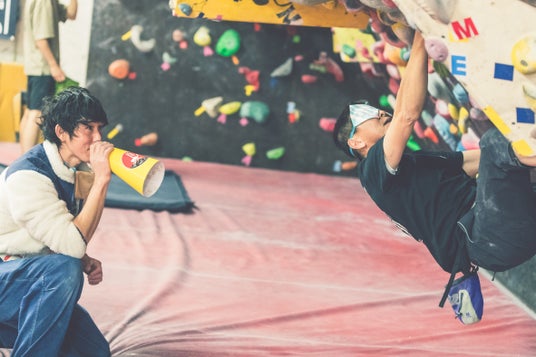 壁を登るアイマスクを着用したクライマーと、クライマーに代わりホールドのある方向や位置、形を伝える役割を担うサイトガイドの二人一組でチャレンジします。決勝進出チームは、予選結果から「ボスザル」「大ザル」「小ザル」の3クラスに分け、それぞれの上位3チームが決勝に進出します。