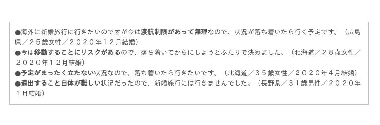■ 「新婚旅行」は控えた人が多いものの、GO TOトラベルの影響も?