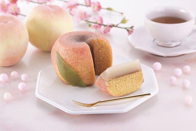 桃そっくりな桃の形のバームクーヘン。 桃のフルーティさを表現するために