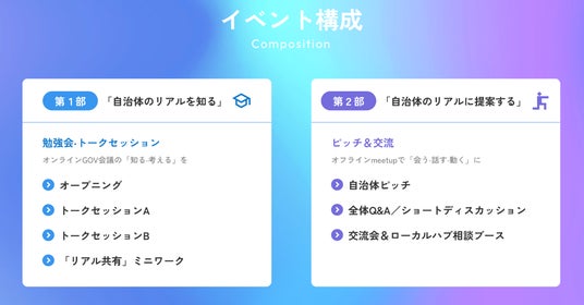 オンライン配信だけでは伝わりにくい、連携の裏側にある「本当のプロセス」--庁内調整、提案の受け止め方、案件化のつまずきや工夫を、トークセッション形式で具体的に共有します。さらに第2部では自治体のリバースピッチと交流の時間を設け、企業からの提案・相談につながる設計としています。
