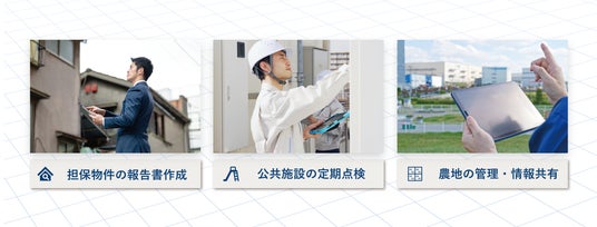 - 金融機関・不動産会社などでの担保物件の記録や報告書の作成に。
