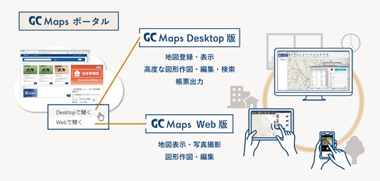 GC Mapsはクラウド型のGISサービスです。利用者によるサーバ構築やソフトウェア更新は不要で、インターネットの接続環境があれば利用を開始できます。