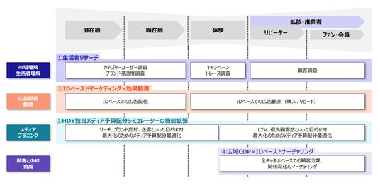 台湾最大級のオンライン/オフライン購買データを保有する同社と提携することにより、台湾生活者を俯瞰的に洞察できるビッグデータ分析やビッグデータを活用した新・ 生活者リサーチ(※5)に加え、メディアプランニングからIDベースドの広告配信と購買観測、ロイヤルカスタマーの育成といったフルファネルマーケティング支援や、データマーケティング応用までを実現するマーケティングソリューションの開発に取り組んでまいります。