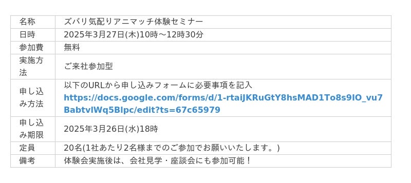 東京都ビジネスサービス株式会社(本社:東京都江東区、代表取締役社長:根津 史明)は、2025年3月27日(木)にボードゲーム「ズバリ気配りアニマッチ」の体験セミナーを開催することとなりましたのでお知らせいたします。