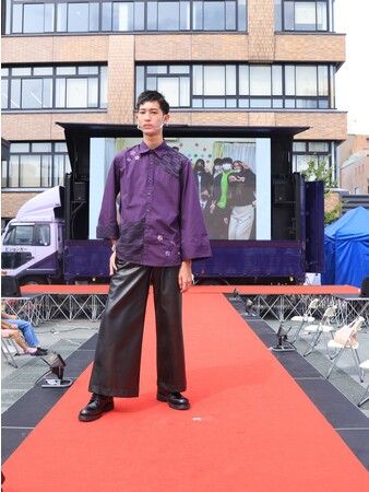 axes femme の古着をリメイクし新たなアイテムを作成し自らが着用しランウェイを歩きました。