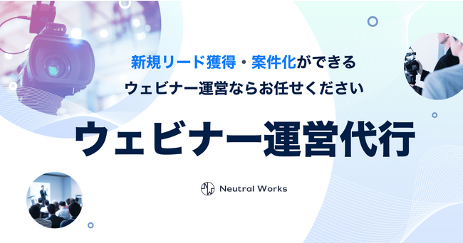 そこで、ニュートラルワークスでは、ウェビナー運営を支援する「ウェビナー運営代行」サービスの提供を開始いたします。幅広いマーケティングの知識と豊富な実績を基に、成果最大化までお手伝いいたします。