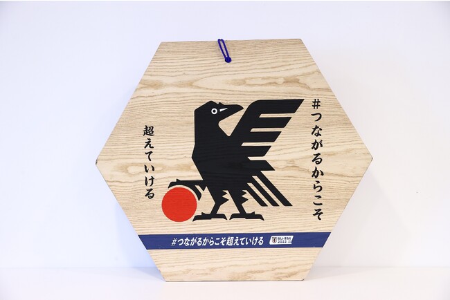 SAMURAI BLUE(サッカー日本代表)応援プロジェクト「新しい景色を2022」の一環として9月より約2ヶ月間実施した「SAMURAI BLUEに応援メッセージを届けよう ~折り紙プロジェクト/全国バスキャラバン~」で、全国のサッカーファミリーから集まったメッセージが必勝を祈願する「絵馬」となり、その絵馬が同じく9月からスタートしたSNS企画「#つな超えキャンペーン」の当選者2名によって選手に届けられました