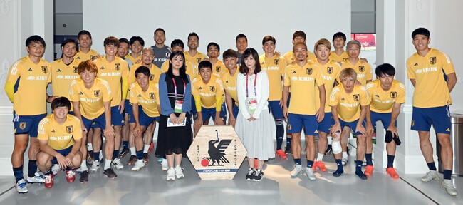 日本中から届いた応援メッセージを選手の皆さんに無事お渡しできて安堵しています。選手の皆さんも大変喜んでくださり、お一人お一人の眩しい笑顔を見ることができ、この上ない感動に浸っています。森保監督の素晴らしいお人柄に触れ、チームワークの良さも監督との信頼関係ゆえに築かれているものだと実感しました。SAMURAI BLUEを応援する気持ちが一層強まりました。夢のような機会を頂き本当にありがとうございました。