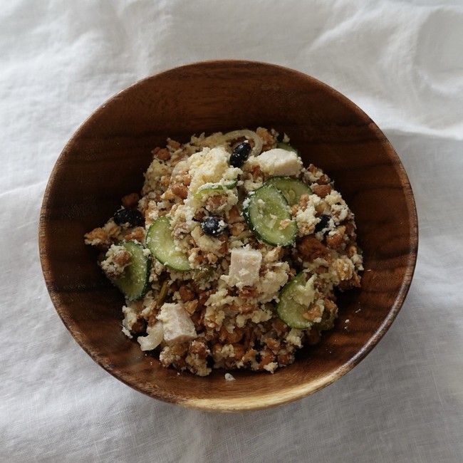 「ごろグラ 糖質60%オフ まるごと大豆」とおからのプロテインサラダ