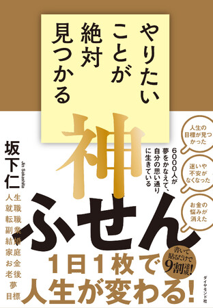 書いて貼って並べ替えるだけで「やりたいこと=人生の目的」が見つかるメソッドがつまった『やりたいことが絶対見つかる神ふせん』(坂下 仁:著)が、ダイヤモンド社から11月1日に発売されます。