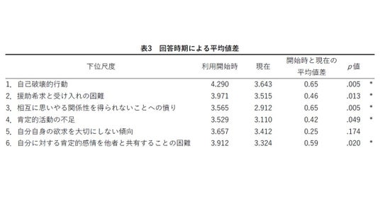 6つの下位尺度の中から計5因子で統計的に有意な差が見られました。また、1. 「自己破壊的行