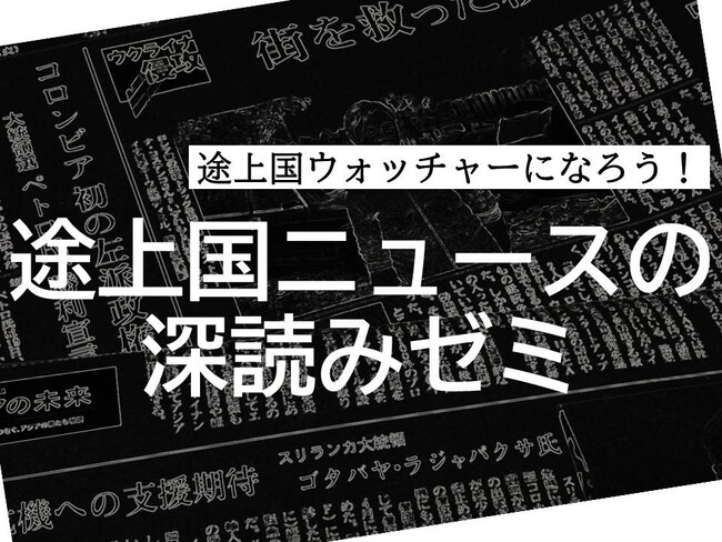 途上国・国際協力に特化した非営利メディア「ganas」を運営するNPO法人開発メディアは2023年1月、計4回のオンラインプログラム「途上国ニュースの深読みゼミ」(4期)を開講します。ganas編集長と一緒に途上国のニュースを読みながら、内容を深めていくというのが内容。ニュースの背景が見えてきます。途上国ウォッチャーになる一歩に!