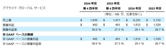 2024年度の売上高は過去最高の271億8,000万ドルでした。GAAPベースでは、売上総利益率が過去最高の47.5%、営業利益は過去最高の78億7,000万ドル(売上高の28.9%)、1株当たり利益は過去最高の8.61ドルでした。