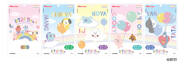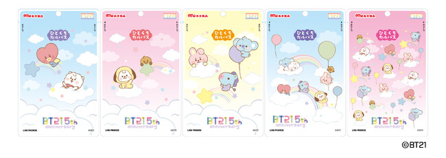デザインラインアップは全5種類。『BT21 BABY』のキャラクターたちが虹や雲で遊んでいるかわいいデザイン