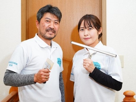 窓フィルム施行ビジネスを開始した寺島さん(左)