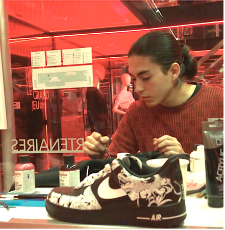 フランス人の父と日本人の母を持ち、幼い頃からファッションやファインアート、芸術作品に触れて育つ。日本の伝統的な文様や絵画を独自の感性で表現し、彼のホームグラウンドであるフランスパリでアート活動をはじめる。スニーカーアートを通じて有名ミュージシャンの舞台衣装なども手がけてきた。日本とフランスのアートシーンを、独自の視点で表現するアーティストとして、今後ボーダレスな活動が期待されている。