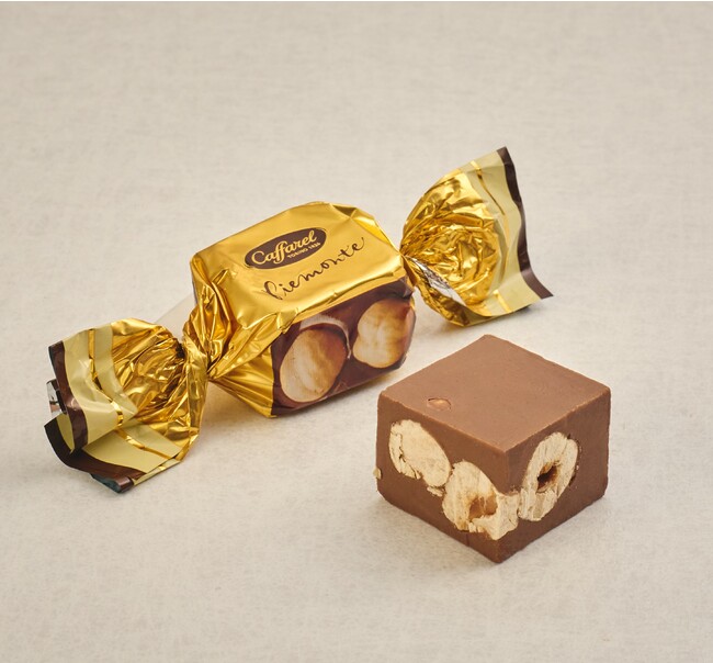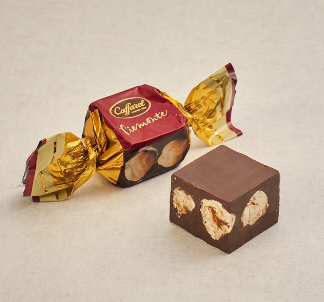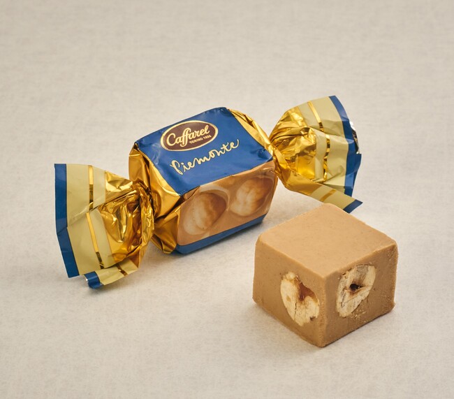 詳細:ローストしたヘーゼルナッツをジャンドゥーヤ生地で包み、キューブ状にカットした「ピエモンテ」。