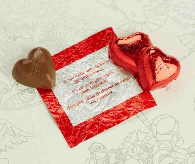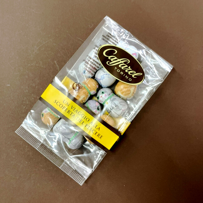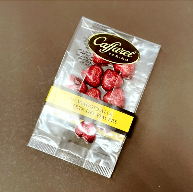 詳細:キラキラひかるホログラム入りのホイルに包まれたカファレル特製のミルクチョコレート。ホイルの裏面にはイタリア語、フランス語、英語の3ヵ国語で愛の言葉が綴られています。その数なんと50種類!