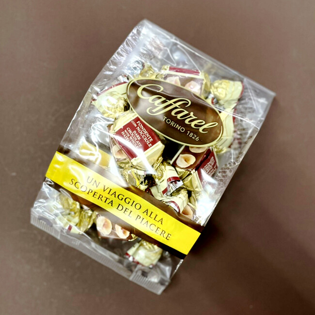 詳細:カファレルの代名詞である「ジャンドゥーヤ」のビターフレーバー。ジャンドゥーヤと同じく、イタリア・ピエモンテ州の最高級のヘーゼルナッツペーストが練り込まれており、1粒でまるで上質なチョコレートケーキを食したかのような満足感が得られます。