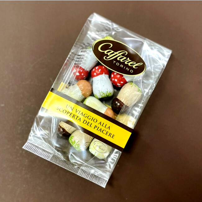 詳細:可愛いきのこ柄のホイルに包まれたカファレルの定番人気チョコレート「きのこ」。ジャンドゥーヤクリームをミルクチョコレートでコーティングしました。きのこの柄は全3種類。並べて眺めるだけでも幸せな気持ちにさせてくれるデザインです。