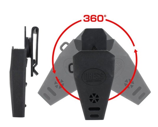 安全なロック機構を搭載。落下防止用ランヤードと専用ケースも付属。