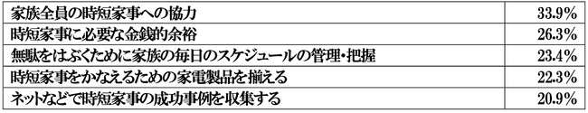 ● 家庭で時短家事がうまくいくために必要なことBEST5