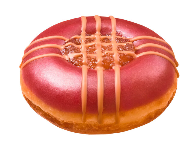 『ニューヨーク アップルパイ』 は、口にほおばった瞬間りんごの甘酸っぱさが広がるドーナツです。ふわふわの生地に、甘さと酸味のバランスが良いアップルアイシングを重ね、まんなかにシナモンアップルフィリングをのせました。仕上げに、キャラメルチョコでクロスラインを描くことで、小さなアップルパイに見立てたドーナツの完成です。フルーティーなりんごの味わいと、シナモンの豊かな香りをお楽しみください。