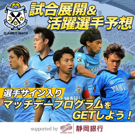 ジュビロ磐田の試合展開や活躍選手を「なんドラ」で予想。予想結果によって付与されるランキングで1位となった方には選手直筆サイン入りオーセンティックユニフォームを!さらに2位~4位の方には選手直筆サイン入りマッチデープログラムをプレゼントします。