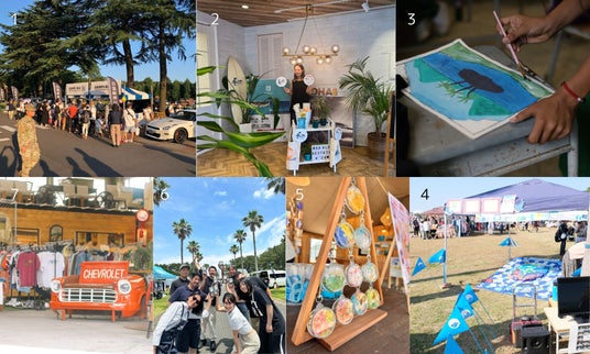 当日のコンテンツイメージ、1.日産神奈川販売 2.ケーエステート 3.メゾンカカオ財団 4.湘南学園小学校 5.湘南菱油 6.グッドシェアリングカマクラ 7.服部商店