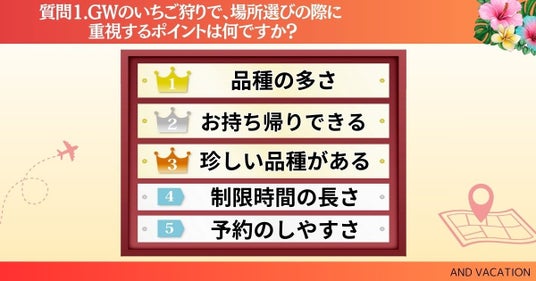 そこで、GWで人気のいちご狩りで、何を重視して場所選びをするのかをアンケートで聞き取り調査をしました。ぜひ、チェックしてみてください!