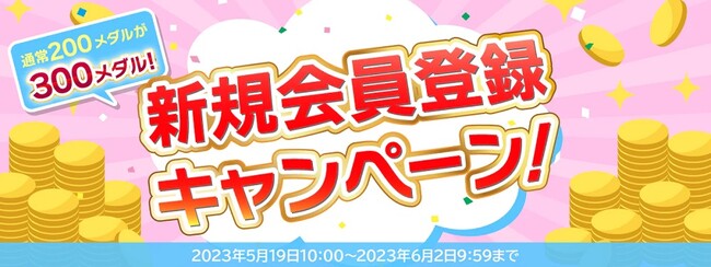 通常200円分のところ、期間限定で300円分のメダルをプレゼントいたします。