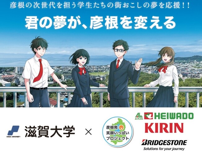 株式会社平和堂、キリンビール株式会社(滋賀工場)、株式会社ブリヂストン(彦根工場)は、「彦根発 笑顔いっぱいプロジェクト」の取り組みとして、街づくりの次世代リーダーとなる地元彦根の高校生に「地域資源を活かした活動」や「地域の課題解決に繋がる活動」等の企画を募集し、特に優れた企画を決定しましたので、お知らせいたします。