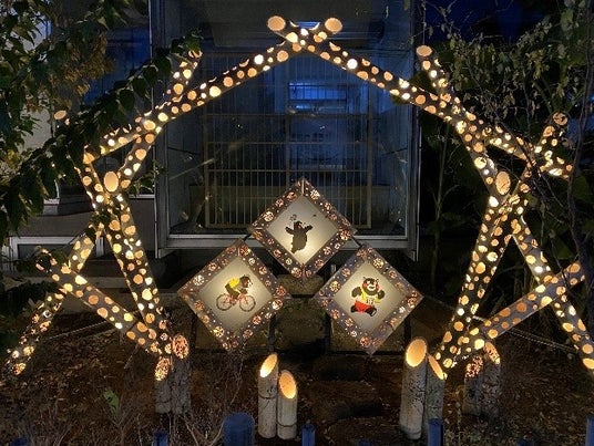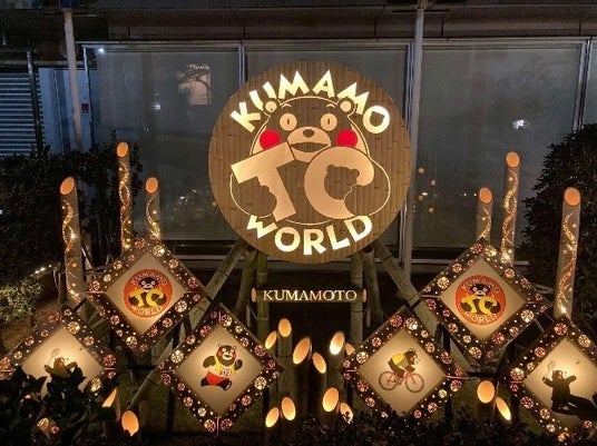 熊本県の営業部長兼しあわせ部長を務めるくまモンが、2025年3月にデビュー15周年を迎えるに当たり制作した「くまモン15周年記念ロゴ」をモチーフ竹あかりオブジェ等を展示します。