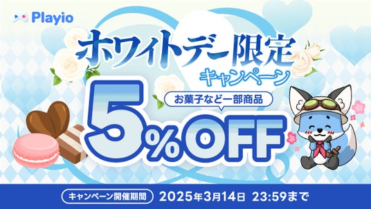 ホワイトデー3/14(金)限定!「Playio」内のチョコレートなど一部お菓子商品が5%割引になるキャンペーンを開催いたします。