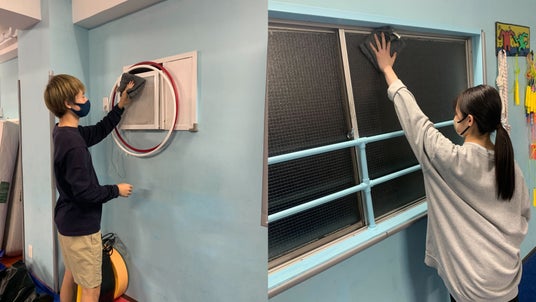 通常、レッスン後に掃除は行いますが、普段行わないようなエアコンフィルター、窓ガラス、鏡、ロッカーなど、隅々までを綺麗にいたしました。