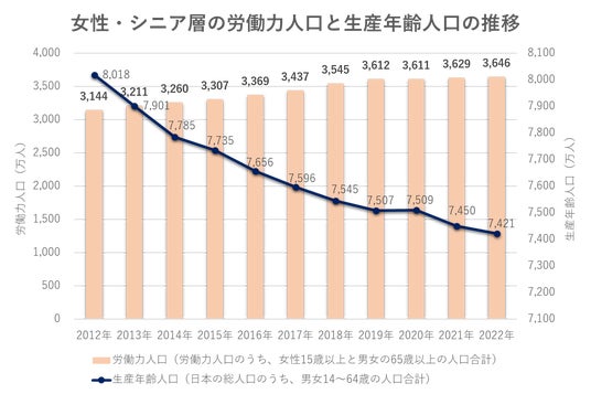 日本国内では、今後さらなる労働人材不足が予測されており、企業において働き手の確保が最重要課題となっています。そのため、現在就労していない女性・シニア層の労働参入が増加傾向にあり、就労者の労働時間の延長が解決の選択肢の一つとされています。このような環境下において、当社は、休眠労働力の掘り起こしを積極的に行うとともに、さらなる人材採用・教育の効率化、高度化への迅速な対応を進めています。