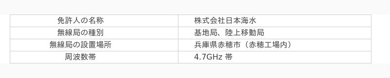 エア・ウォーターグループの株式会社日本海水は、近畿総合通信局へローカル5G用無線局の申請を行い、2024年5月17日に免許を取得いたしました。