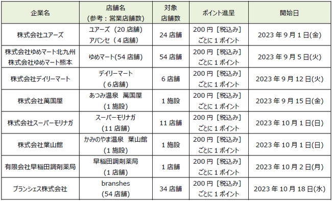 * 記載の店舗数は、発表日現在の店舗数となります。
