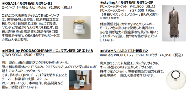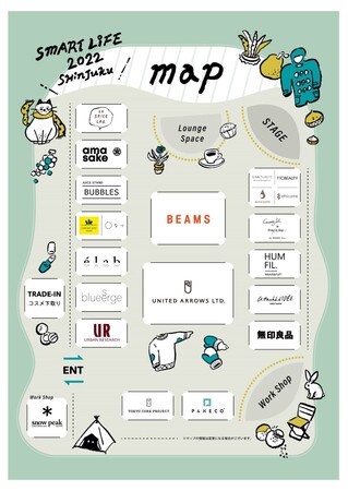 ※出店ショップ:ユナイテッドアローズ、BEAMS、アーバンリサーチ、無印良品、アタッシェ ドゥ イデー、HUMFIL、佐々木商店、ラキャルプ、blueserge、élab、ルミネアグリショップ、えんなり、JUICE STAND BUBBLES、amasake、出雲スパイスラボ、PANECO(展示)、東京コルクプロジェクト(展示)