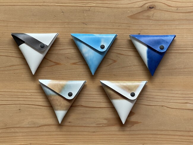 お店で使われていたバナーを使ってカラフルな小物ケースが作れるワークショップ。小銭入れやキーケースなど幅広い用途に使えるアイテムです。