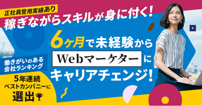 デジタルマーケティング業務未経験からWebマーケターを目指す社会人に向けて提供する、報酬発生型のインターンシッププログラムです。Webメディア運用やWeb広告運用などの実務を通して、実践的にデジタルマーケティングスキルを身につけていただきます。