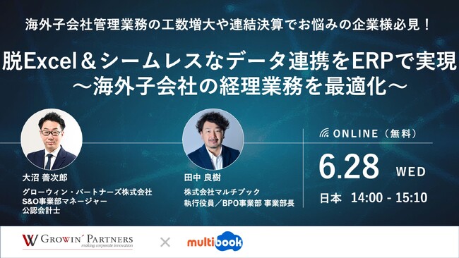 海外拠点を持つ企業の経営管理を支援するクラウドERPサービス「multibook(マルチブック)」を提供する株式会社マルチブック(東京都品川区、代表取締役CEO:渡部 学)は、グローウィン・パートナーズ株式会社(東京都千代田区永田町、代表取締役CEO:佐野 哲哉)と共同で、海外子会社管理業務を最適化するための手法を解説するセミナーを開催いたします。