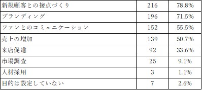 【新規顧客との接点づくり】が最多の78.8%。次いで【ブランディング】が71.5%、【ファンとのコミュニケーション】が55.5%【売上の増加】が50.7%なった。Instagramを通して消費者との関係構築を目的とする企業が多いことが分かった。