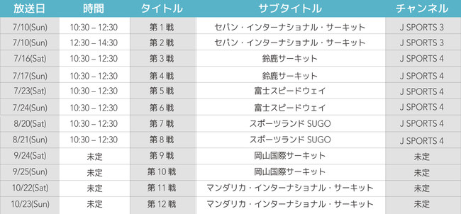 また、本契約に伴い、スポーツ専門チャンネル「J SPORTS」内において、GTWCの全レースを放映することが決定いたしました。