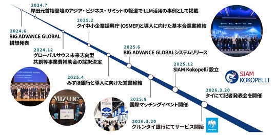 株式会社ココペリ(東京都千代田区、代表取締役CEO:近藤繁、以下ココペリ)及び現地合弁会社SIAM KOKOPELLI Co.,Ltd(バンコク、最高経営責任者:チナティップ・ポンプラバー、以下SIAM KOKOPELLI)は、海外ビジネスマッチングプラットフォーム「BIG ADVANCE GLOBAL」の日本・タイ国での海外ビジネスマッチングを開始します。