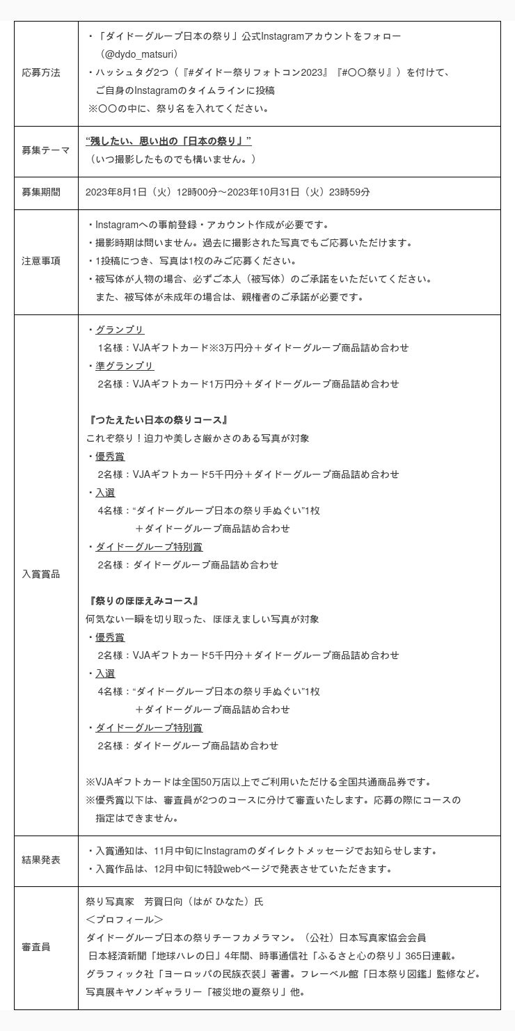 「第3回ダイドーグループ日本の祭りInstagramフォトコンテスト2023」 募集要項