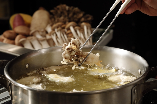 秋の高級食材“松茸”を使った「鶏胸肉と松茸入り茸のテリーヌ」や「松茸入り茸パスタ」をはじめ、「茸の天ぷら」や「鮭のムース包み クリームソース」など、秋の味覚を存分にお楽しみいただけるメニューが並びます。