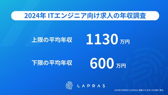 LAPRAS株式会社(所在地:東京都品川区、代表取締役:染谷健太郎 以下、LAPRAS)はハイスキル ITエンジニアと企業を最善のマッチングでつなぐ転職サービス「LAPRAS」に掲載される求人を対象として、提示年収についての調査を発表しました。(*1)