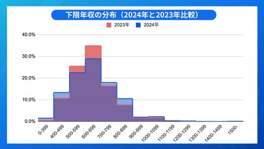 2024年と2023年の下限年収分布の比較