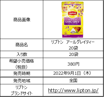 エカテラ・ジャパン・サービス株式会社(本社:東京都目黒区、ジェネラル・マネジャー:光宗 晃子、以下:エカテラ・ジャパン)が展開する紅茶ブランド「リプトン」は、ベルガモットが華やかに香る人気のフレーバーティー「リプトン アールグレイティー 20袋」を、2022年9月1日(木)より、順次全国のスーパーマーケット等の量販店、一般小売店等で発売を開始致します。